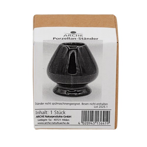 Der schöne Porzellanständer hält den Besen in Form! Trocknet der filigrane Bambusbesen auf dem Porzellanständer, so behält er für lange Zeit seinen weiten Durchmesser und seine typische Form. Ideal für Liebhaber des japanischen Matcha-Tees! Den Porzellanständer für Matchabesen bitte von Hand spülen.