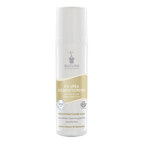 Urea kommt als natürlicher Feuchthaltefaktor auf der gesunden menschlichen Haut vor. Bei extrem trockener Haut, Neurodermitis und Psoriasis ist der Urea-Gehalt der Haut stark herabgesetzt und die Haut kann nicht so viel Feuchtigkeit in sich binden, wie es die gesunde Haut kann. Daher kann mit der BIOTURM 5 % Urea Gesichtscreme Nr.7 der fehlende Anteil an Urea der Haut wieder zugeführt werden und sorgt zusammen mit dem Lacto-Intensiv Wirkkomplex für eine intensive Pflege.