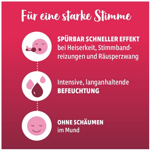 - Spürbar schneller Effekt bei Heiserkeit und Stimmbandreizung