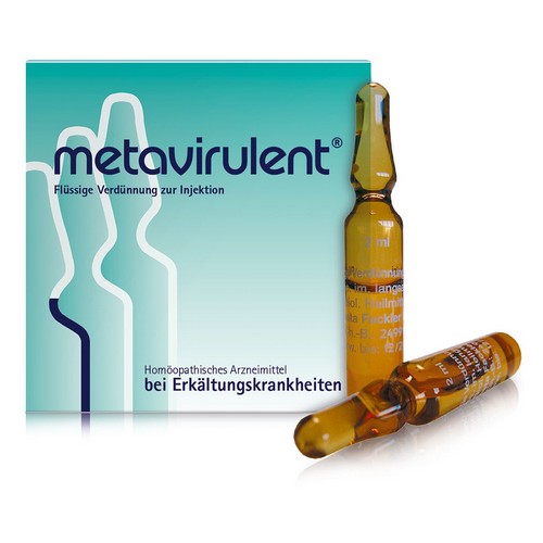 metavirulent® Mischung. Die Anwendungsgebiete leiten sich von den homöopathischen Arzneimittelbildern ab. Dazu gehören: grippale Infekte. Hinweis: Bei Fieber, das länger als 3 Tage anhält oder über 39 °C ansteigt, sollte ein Arzt aufgesucht werden. Enthält 80 mg Alkohol (Ethanol) pro 10 Tropfen, entsprechend 37 Vol.-%.