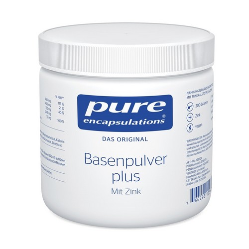 Basenpulver plus von Pure Encapsulations® versorgt den Körper mit wichtigen Mineralstoffen sowie dem Spurenelement Zink, das den Säure-Basen-Stoffwechsel stabil hält. Zink trägt zum Erhalt des körpereigen "Puffersystems" bei, welches den pH-Wert auf einem konstanten Niveau hält, agiert als Co-Faktor des Enzyms Carboanhydrase und hat daher direkten Einfluss auf den Erhalt eines ausgewogenen Säure-Basen-Haushalts. Die spezielle Zusammensetzung der Inhaltsstoffe des basischen Pulvers sorgt zudem dafür, das Elektrolytgleichgewicht aufrecht zu halten, was gerade bei sportlichen Belastungen und starkem Schwitzen, wichtig ist.