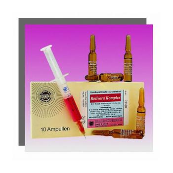 Anwendung: Erwachsenen und Jugendlichen ab 12 Jahren 1x täglich 2 ml entweder i.m., i.v., s.c. oder i.c. injizieren. Eine über eine Woche hinausgehende Anwendung sollte nur nach Rücksprache mit einem homöopathisch erfahrenen Therapeuten erfolgen. Relivora® Komplex sollte ohne ärztlichen Rat nicht länger als 10 Tage angewendet werden.