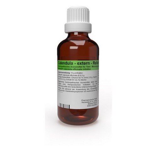 - Unverdünnte Anwendung: Sofern nicht anders verordnet, wird Calendula – extern - ReVet® RV 27 auf der Körperoberfläche und der Haut des äußeren Gehörgangs unverdünnt angewendet. In unverdünnter Form hat Calendula – extern - ReVet® RV 27 aufgrund seiner Zusammensetzung geruchsbindende und keimhemmende Wirkung; dennoch sollten Verbände mit Calendula – extern - ReVet® RV 27 pro Tag 1-2mal gewechselt werden. Auf Schleimhäuten sollte Calendula – extern - ReVet® RV 27 verdünnt angewendet werden