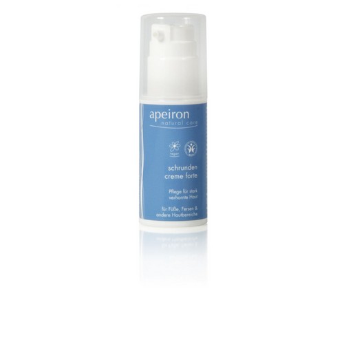 Apeiron Schrunden Creme ist mit ihrem pflanzlichen Wirkkonzept speziell auf eine optimale Pflege verhornter Füße sowie anderer Hautbereiche abgestimmt. Extrem feuchtigkeitsarme, trockene und im Alltag täglich beanspruchte Hautpartien neigen häufig zur Bildung von Rissen, Schrunden und Rötungen und den damit verbundenen, unangenehmen Begleiterscheinungen. Diese sensiblen, an Feuchtigkeitsverlust leidenden, Hautstellen benötigen eine besondere Pflege, die trockene und rissige Haut z. B. an den Fersen wieder regeneriert und ein zartes Hautgefühl verleiht – für mehr Wohlbefinden und Vitalität.