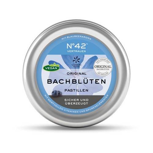 Nahrungsergänzungsmittel mit Süßungsmitteln sowie Bachblütenessenzen, Vitaminen und Spurenelementen in Form von zuckerfreien Pastillen aus Akaziensaft (Gummi arabicum).