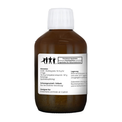 Aufgrund des Interesses an TCM werden chinesischen Kräuterarzneien in Apotheken seit Jahrzehnten auch in Europa hergestellt. CC08 Shufeng Jiedu ist ein apothekenpflichtiges Rezepturarzneimittel. Dieses Produkt wird als Rezeptur im Labor der Pestalozzi Apotheke für Sie hergestellt. Dabei wird das Verfahren nach CompaSan Compaktate verwendet. Das Verfahren gilt als neuartig und innovativ bei der Herstellung hochkonzentrierter Heilpflanzen-Spezialextrakte.