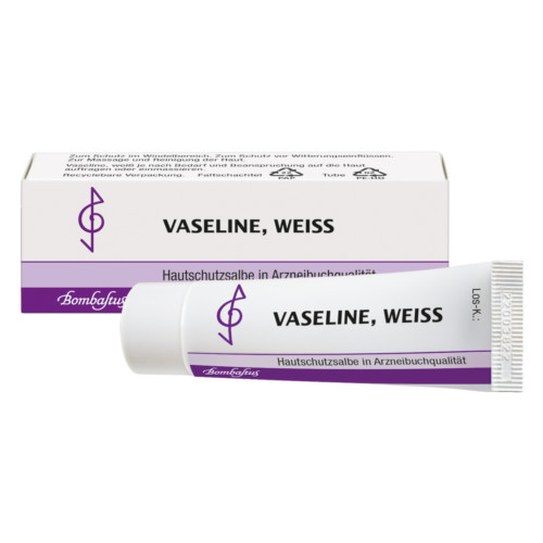 ist eine Hautschutzsalbe. Sie schützt die Haut im Windelbereich vor Nässe und andere Hautbereiche vor Witterungseinflüssen. Vaseline, weiß Ph.Eur. eignet sich für Massagen und kann auch zur Reinigung der Haut von Make-up verwendet werden.